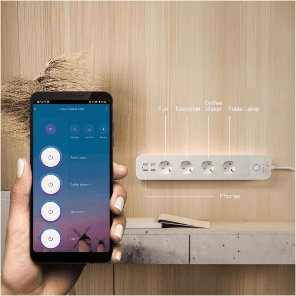 Die Helo-POWER-4-EU Steckdosenleiste ist mit Ok Google oder Alexa kompatibel und ermöglicht es Ihnen, den Stromverbrauch mithilfe der Power Meter-Funktion zu messen.
